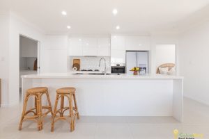 The open plan living / dining area is serviced by a functional and practical kitchen with stone benchtop and handy butler’s pantry with extra sink and cupboard. The kitchen also features plenty of storage, high gloss cabinetry, quality appliances, fixtures and fittings. The kitchen easily services the dining and living area with access out to the patio via the dual sliding doors. Outside relaxation is easy with gentle breezes flowing through and picturesque leafy backdrop thanks to the well established trees in the reserve.
