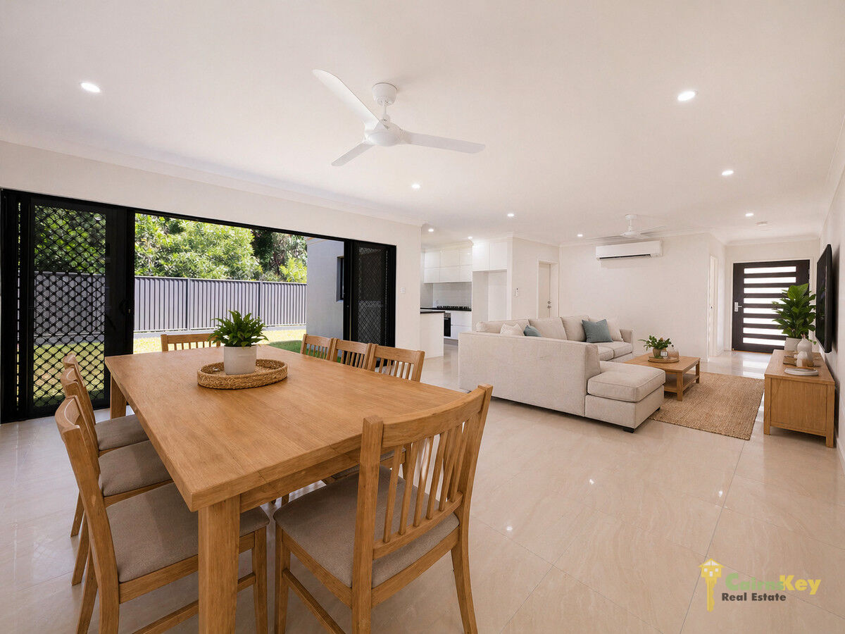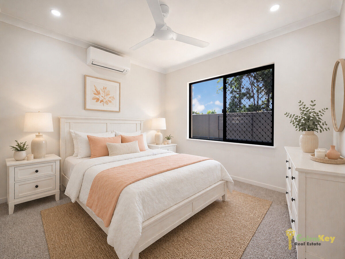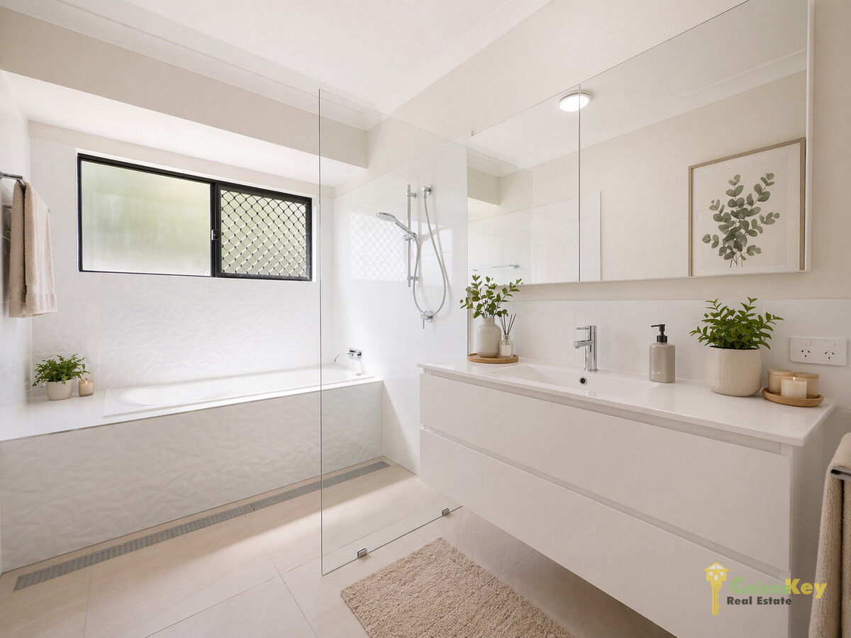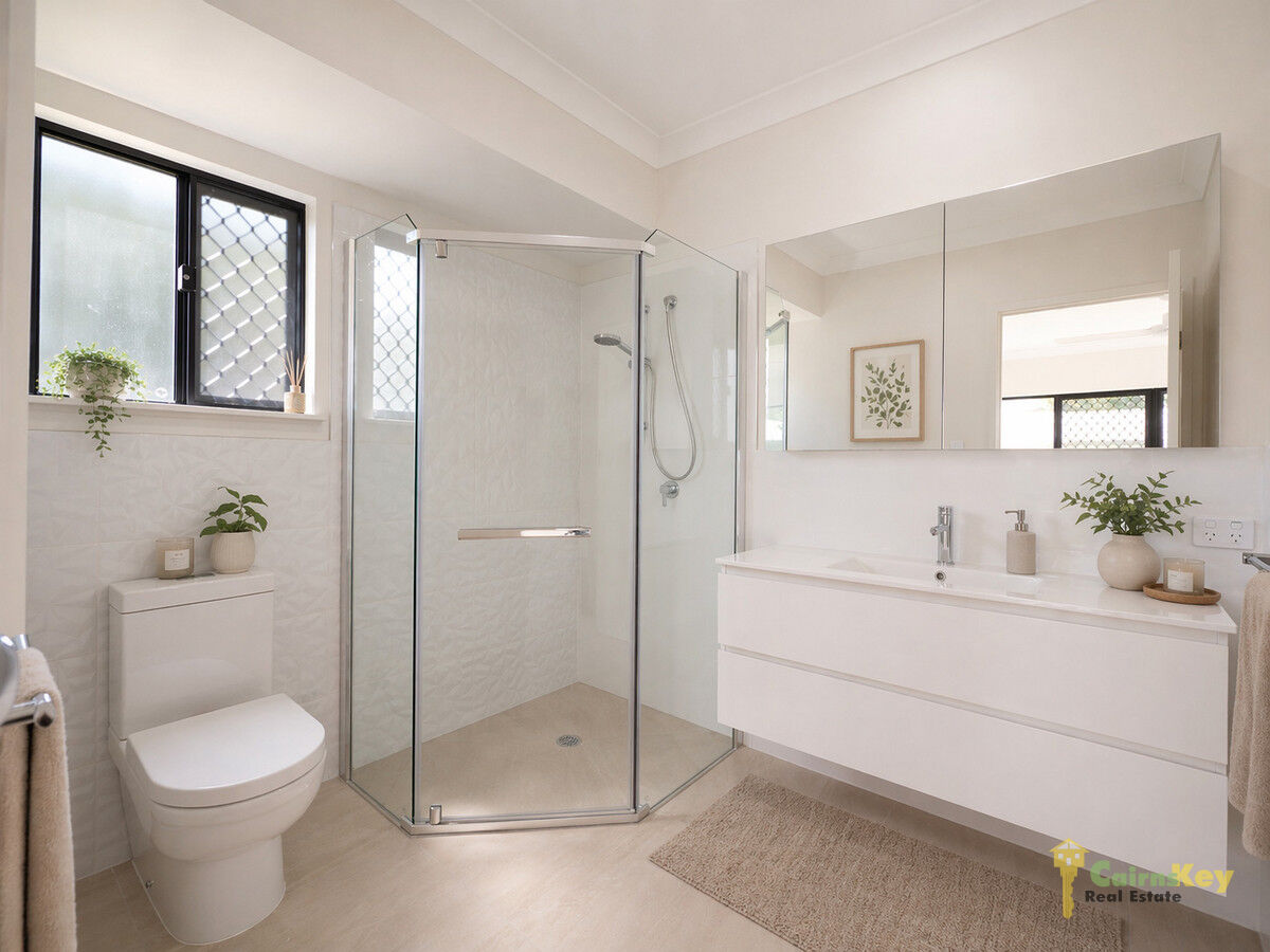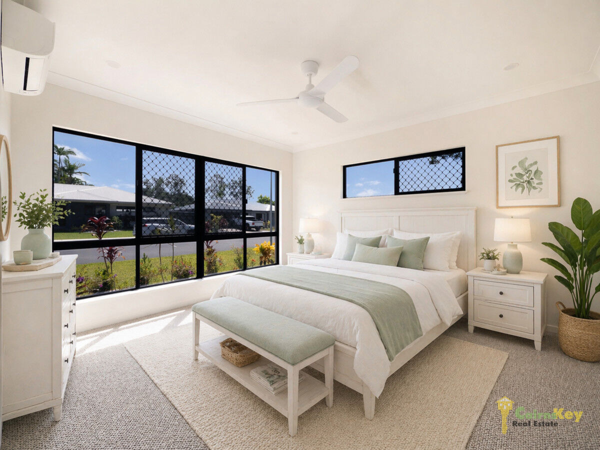 With low maintenance yard you’ll love the landscaping front and rear with auto irrigation. With 10.56kw solar system, exposed aggregate driveway, security screens to all sliding doors and windows, letterbox and even clothesline everything has been done for you to just move in and enjoy the tropical beaches lifestyle! Chat to the team onsite during inspection times or contact Cairns Key Real Estate today on 4042 6000