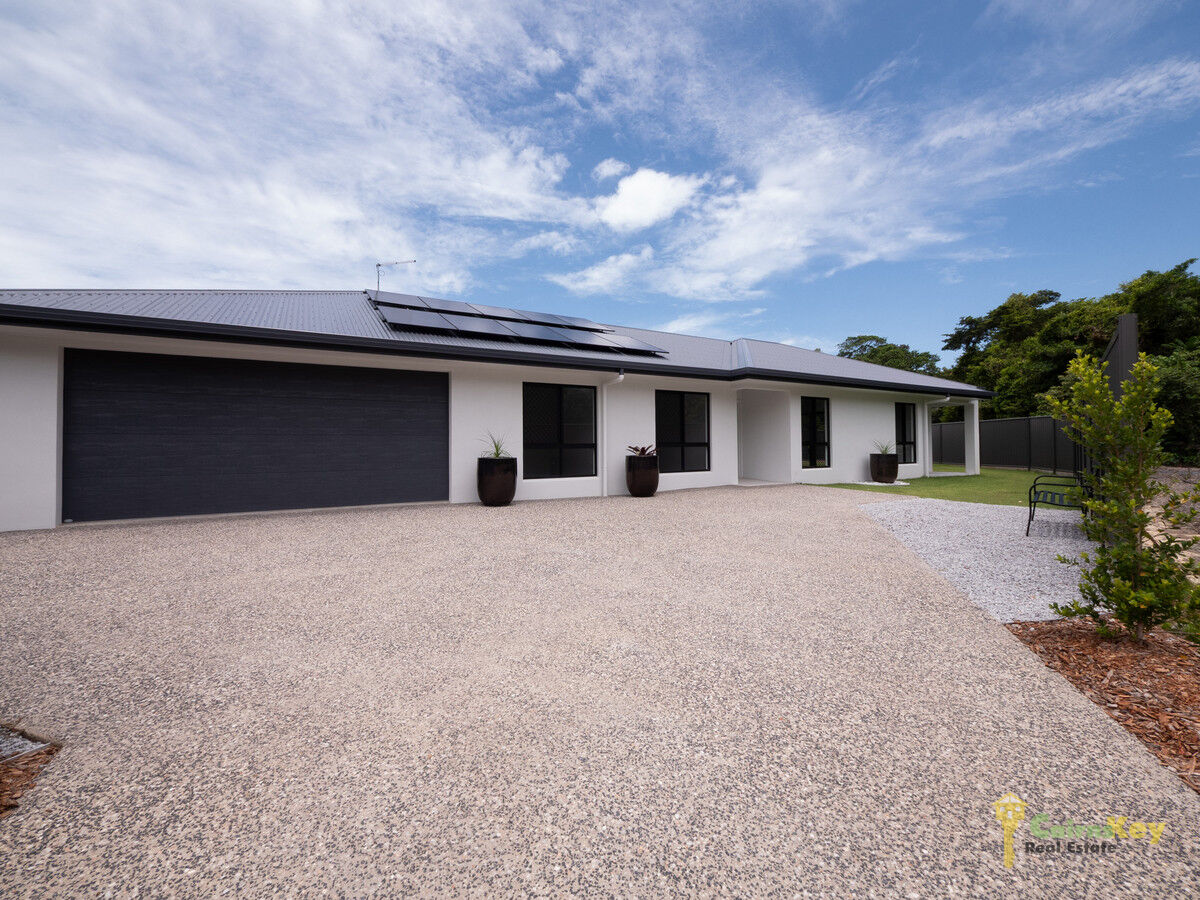 With low maintenance yard you’ll love the landscaping front and rear with auto irrigation. With 10.56kw solar system, exposed aggregate driveway, security screens to all sliding doors and windows, letterbox and even clothesline everything has been done for you to just move in and enjoy the tropical beaches lifestyle! Chat to the team on site during inspection times or contact Cairns Key Real Estate on 4042 6000 to discuss your options.